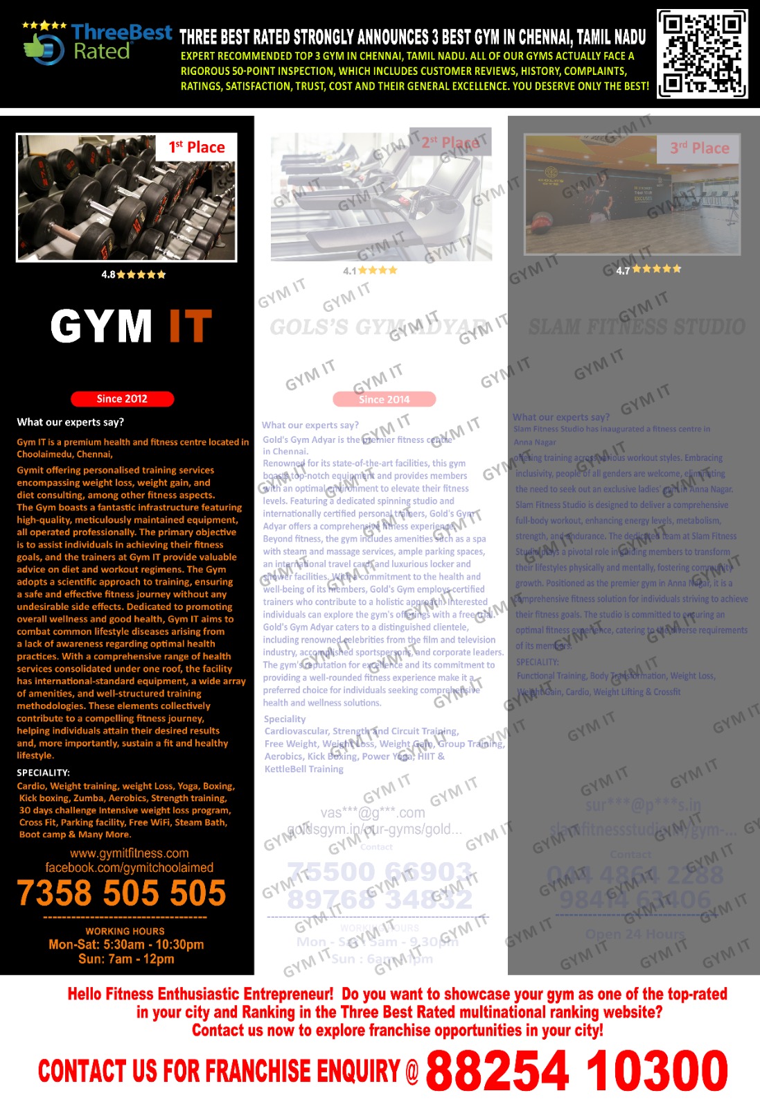 Gym It Choolaimedu is rated as Chennai’s Best Gym destination by Three Best Rated.